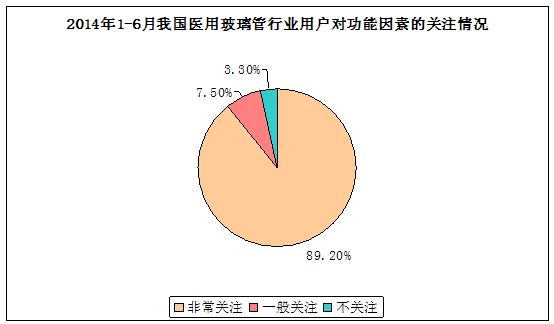 图表25 2014年1-6月我国医用玻璃管 行业 用户对功能因素的关注情况