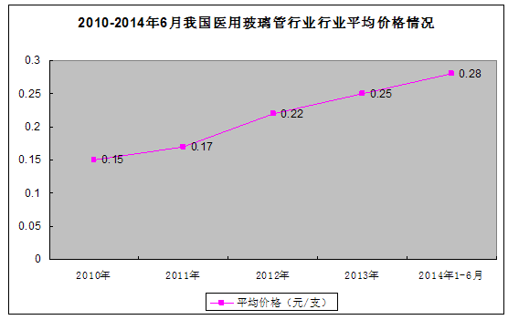 图表22 2010-2014年6月我国医用玻璃管 行业 价格趋势情况