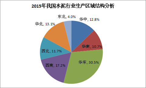 图表 12:2015年我国水泥 行业 生产区域结构 分析