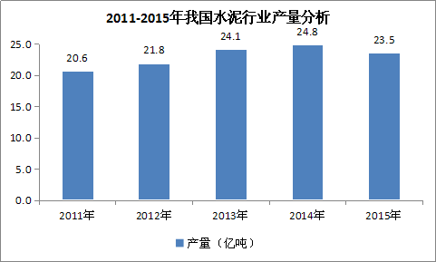 图表 11:2011-2015年我国水泥 行业 产量 分析