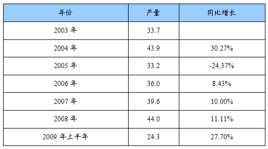 1、上半年全国温石棉生产量比去年有明显增长,拉动总量增长的主要因素是09年以来,阿克塞地区产量增长较大。上半年国内温石棉销售情况比去年同期明显下降,主要原因还是受到大环境影响导致的需求下降。