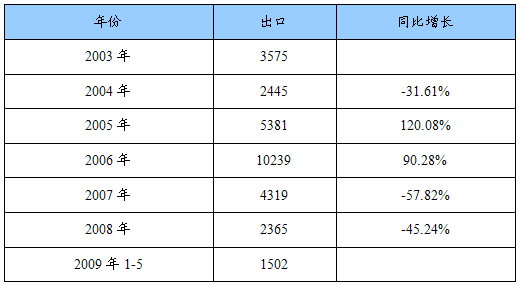 2、据海关统计,09年上半年温石棉进口量有大幅下降。前五个月进口总量79839.86吨,其中四、五两个月比例较大。