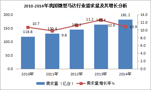 图表 17:2010-2014年我国微型马达 行业 需求量及其增长 分析