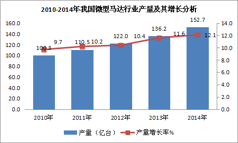 图表 14:2010-2014年我国微型马达 行业 产量及其增长 分析