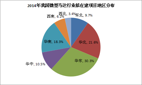 图表 16:2014年我国微型马达 行业 拟在建项目地区分布