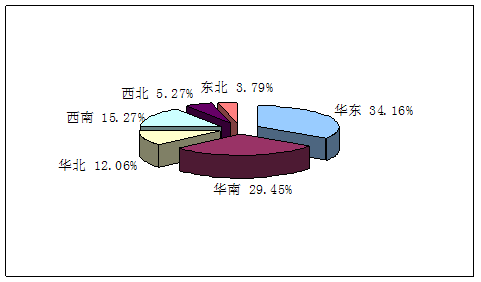 2009年蚊香需求地区分布统计图