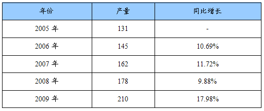 2005-2009年电子灭蚊器产量及同比增长统计表