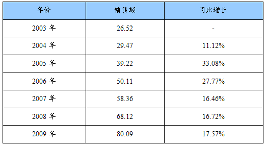 2003-2009年蚊香销售额及同比增长统计表
