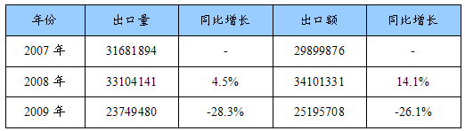 2007-2009年我国蚊香出口年度统计表