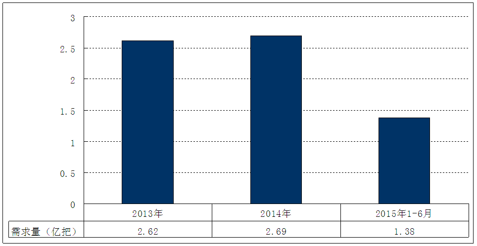 图表 17 2013-2015年6月我国旋耕刀具 行业 需求量 分析