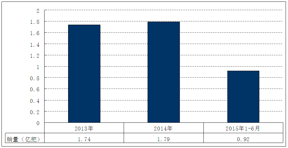 图表 14 2013-2015年6月我国旋耕刀具 行业 销量 分析