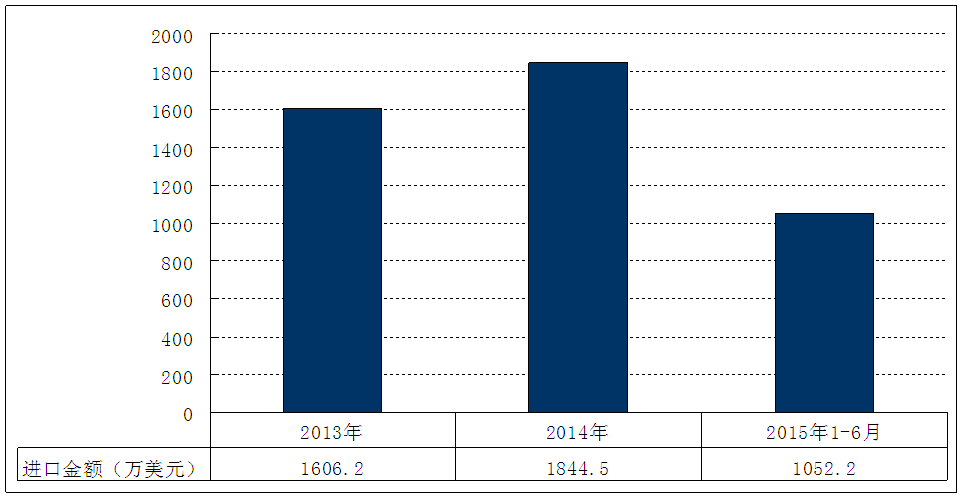 图表 19 2013-2015年6月我国旋耕刀具 行业 进口额 分析