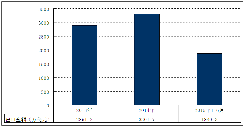 图表 20 2013-2015年6月我国旋耕刀具 行业 出口额 分析