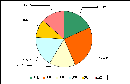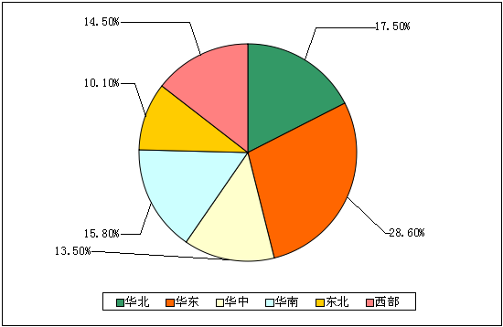 图表 16 2015年1-2月我国运动护具 行业 生产区域结构 分析