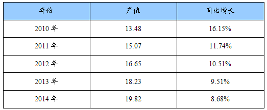 2010-2014年细胞培养反应器产值及同比增长预测表