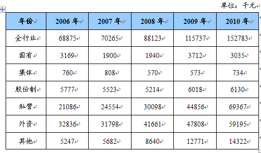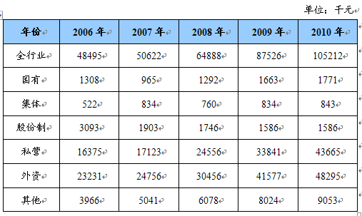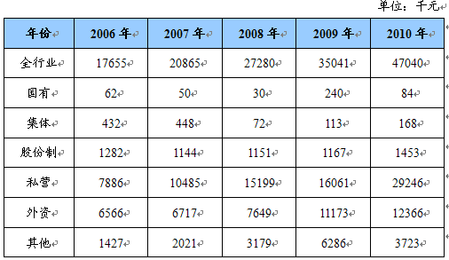2006-2010年 行业 不同所有制企业销售费用比较 分析