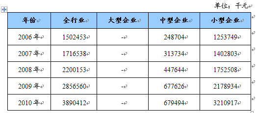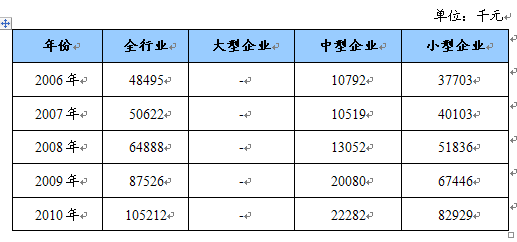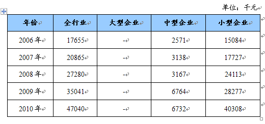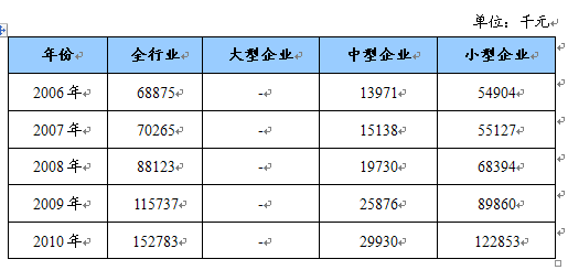 2006-2010年 行业 不同规模企业销售费用比较 分析