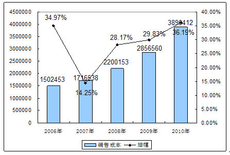 第一节 2006-2010年中国水刺无纺布 行业 产品销售成本 分析