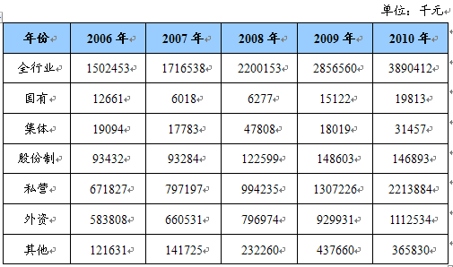 2006-2010年 行业 不同所有制企业销售成本比较 分析