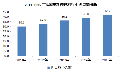 图表 19:2011-2015年我国塑料药包材 行业 进口额 分析