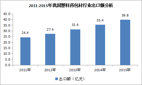 图表 20:2011-2015年我国塑料药包材 行业 出口额 分析
