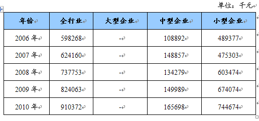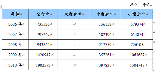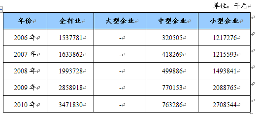 2006-2010年 行业 不同规模企业固定资产净值 分析