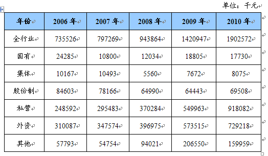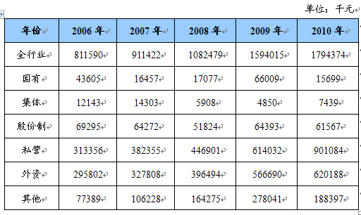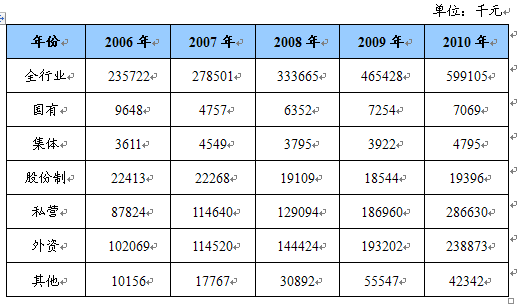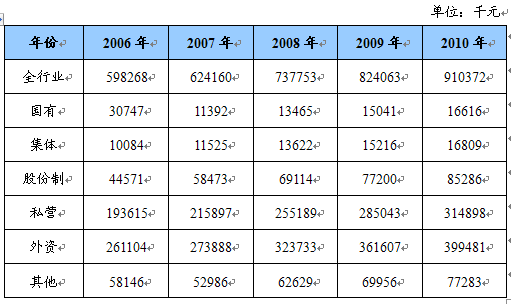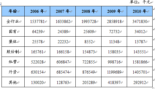 2006-2010年 行业 不同所有制企业固定资产净值 分析
