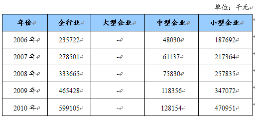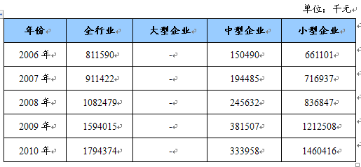 2006-2010年 行业 不同规模企业资产规模比较 分析