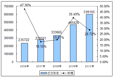 第五节 2006-2010年中国水刺无纺布 行业 应收账款总额 分析