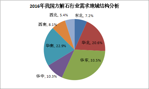 图表 17:2016年我国方解石 行业 需求地域结构 分析