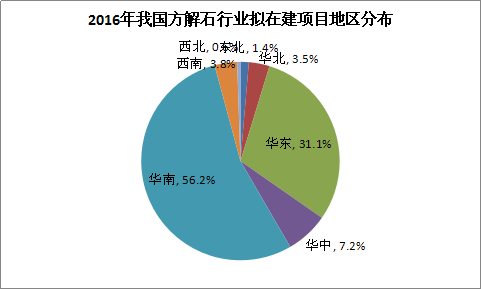 图表 15:2016年我国方解石 行业 拟在建项目地区分布