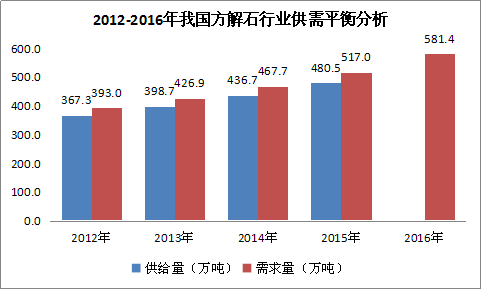 图表 20:2012-2016年我国方解石 行业 供需平衡 分析