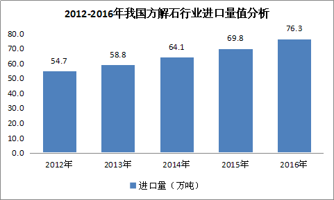 图表 18:2012-2016年我国方解石 行业 进口量值 分析
