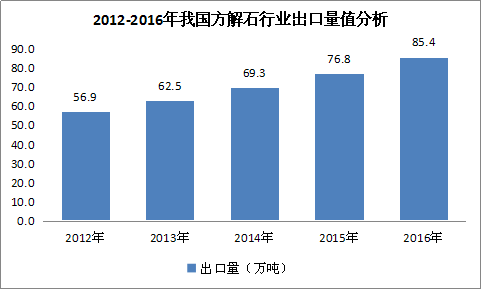 图表 19 :2012-2016年我国方解石 行业 出口量值 分析
