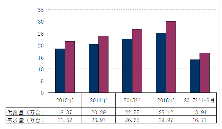 图表16 2013-2017年6月我国净化槽 行业 产量及增长情况