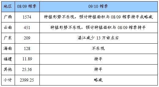 目前世界上甘蔗种植面积最大的国家是巴西,其次是印度,中国位居第三。我国目前甘蔗种植面积超过2000多万亩,产量最大的广西2008/2009年度甘蔗种植面积已达到了1574万亩,我国糖蜜产量维持在400万吨上下水平。甘蔗种植面积和产量是糖蜜产量的直接影响因素。从我国目前的情况看,未来几年甘蔗的种植面积应保持在比较稳定的水平。