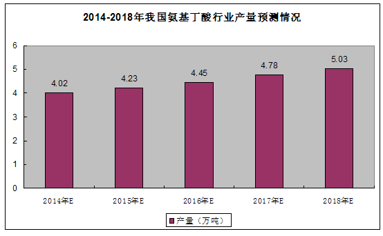 图表120 2014-2018年我国氨基丁酸 行业 产量预测情况