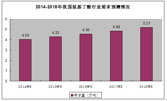图表121 2014-2018年我国氨基丁酸 行业 需求量预测情况