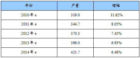 2010-2014年我国涡旋压缩机产业规模及增幅预测表