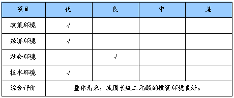 长链二元酸投资环境综合评价