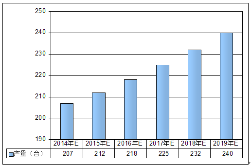 图表 89 2014-2019年我国石油钻机 行业 产量预测