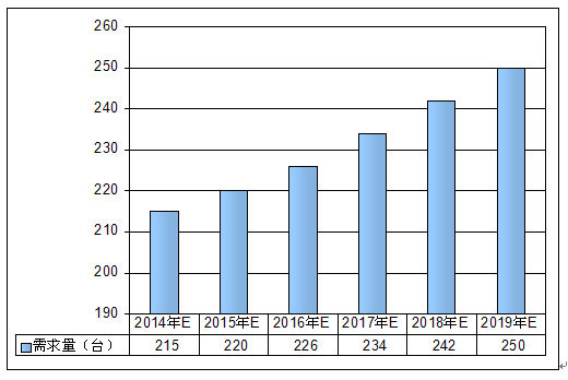 图表 90 2014-2019年我国石油钻机 行业 需求量预测