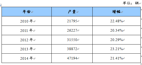 2010-2014年运油(气)槽车 行业 生产规模预测