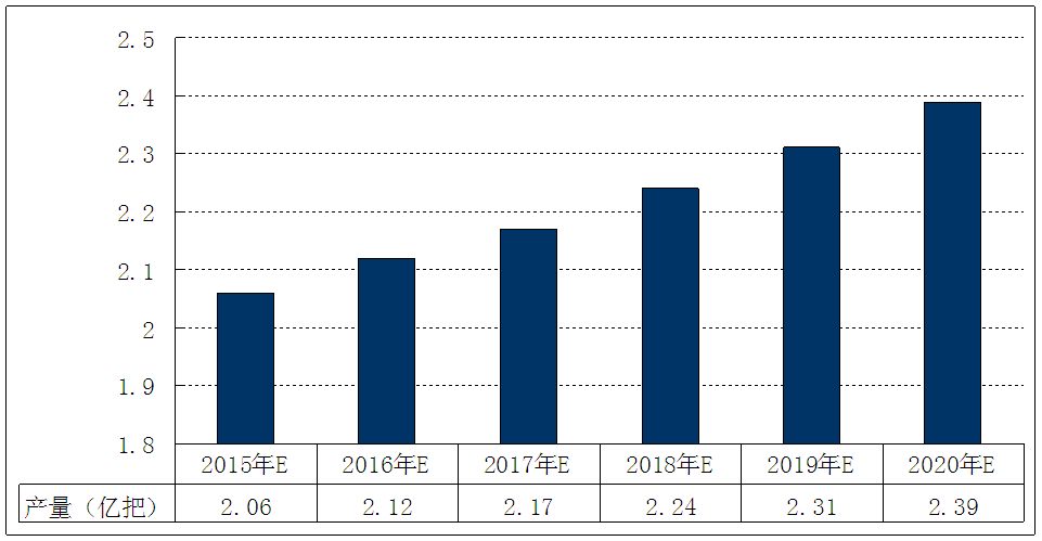 图表 96 2015-2020年我国旋耕刀具 行业 产量预测