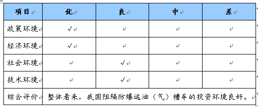我国政府对于压力容器 行业 一贯持鼓励政策,对于阻隔防爆槽车企业也提供了不少鼓励措施。但也不排除政府由于经济因素、政治因素、宏观调控等因素,出台针对 行业 的限制政策,如企业不能及时应对,将造成政策风险。