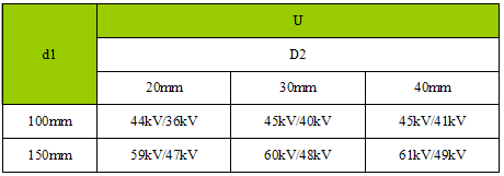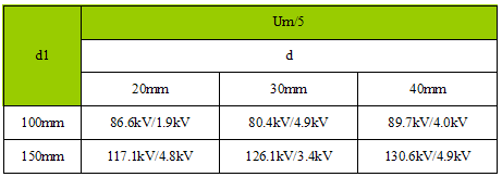 2)闪络电压:在常温常湿条件下进行了全波冲击50%破坏性放电试验,其结果见下表;在常温常湿和凝露条件下进行了工频闪络试验,其结果见下表。