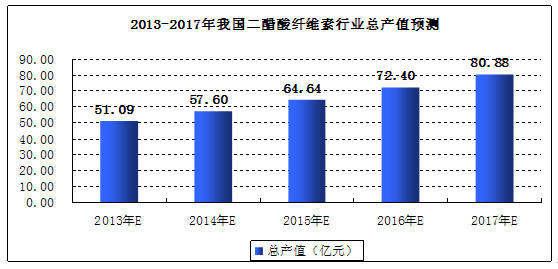图表 58 2013-2017年我国二醋酸纤维素 行业 总产值预测