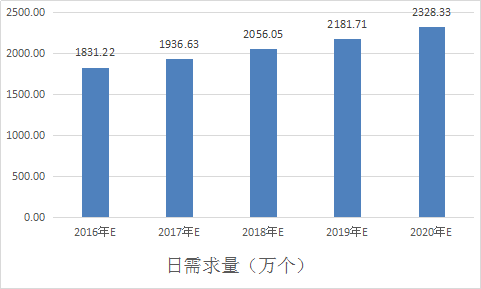 图表 90 2016-2020年我国馒头 行业 需求量预测