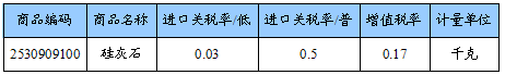 2011年中国改性硅灰石粉关税