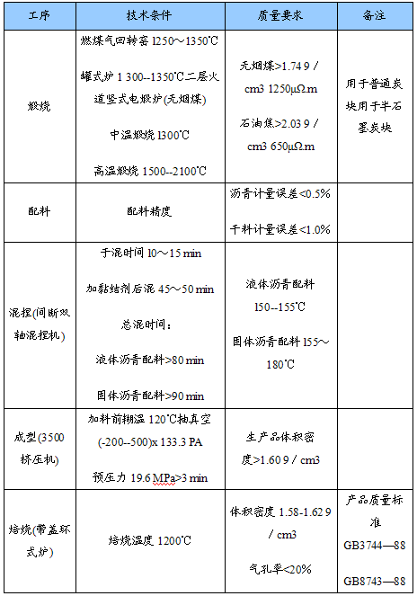 (7)焙烧。对焙烧工序的基本要求是:焙烧制度必须确保煤沥青产生最大的析焦量;在产生最大析焦量的同时整个坯体受热应均匀,使制品致密,结构均匀,无内外裂纹。